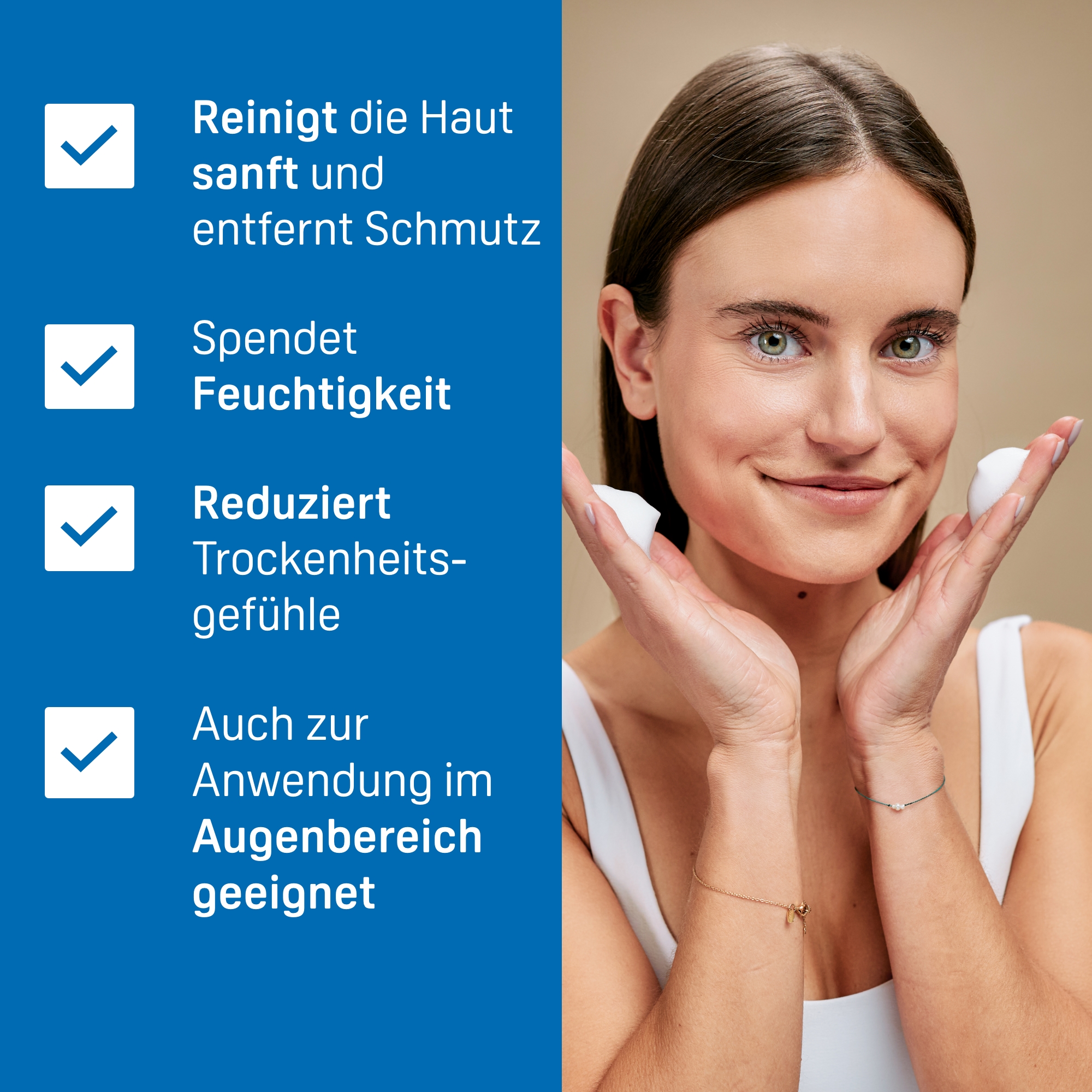 Vor dem Auftragen Hände waschen und das Gesicht mit sanften Tensiden reinigen